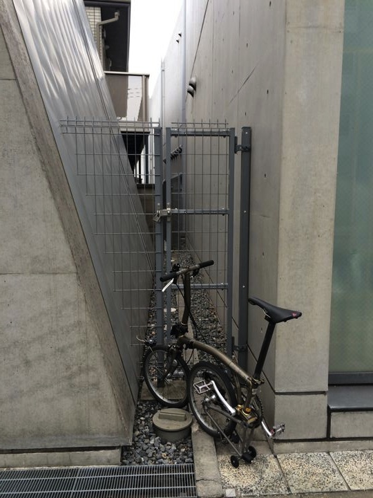 隙間に、ブロくんを停めて、ブロくんはここで待っとけ!