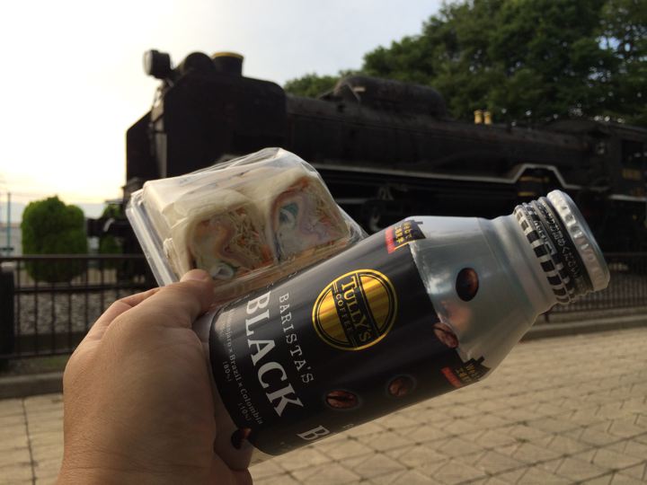 ミスターがSL保存車撮影中は、僕ちゃんはモーニング。うみゃ〜!