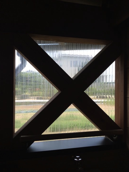 面白いトイレだなぁ。木造にポリカの窓。