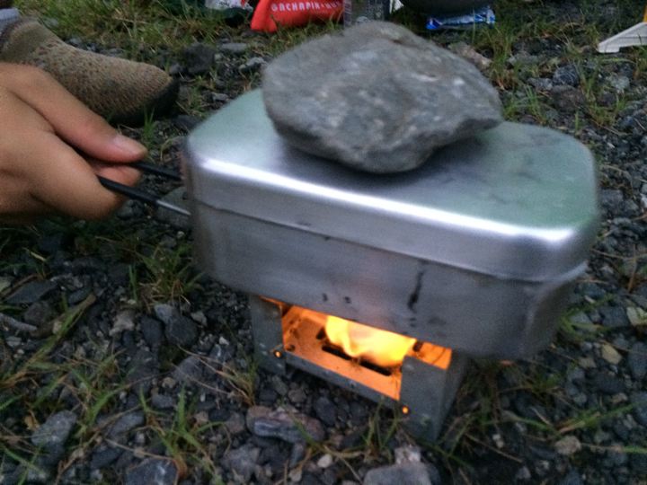 ryoさんは、得意のアルコールストーブで、ファイヤー!