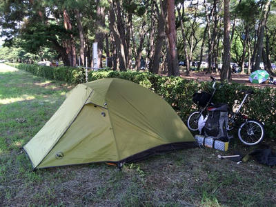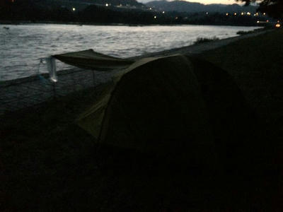 なぜか川岸沿いには僕ちゃんしかテント張ってません。笑