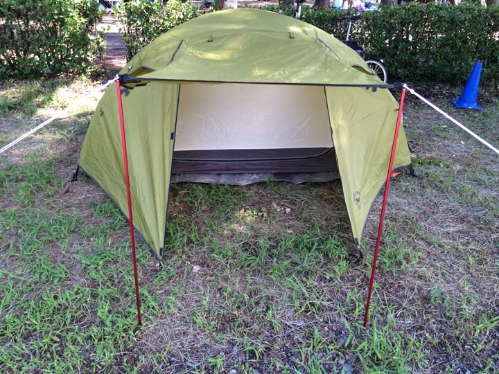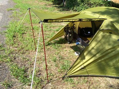 ツェルト用真っ赤ポールにてついに憧れの庇を作ります。