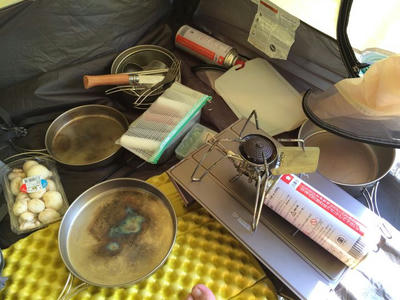 メスティンひっくり返した時に、またしてもグランドシートに触ってしまい