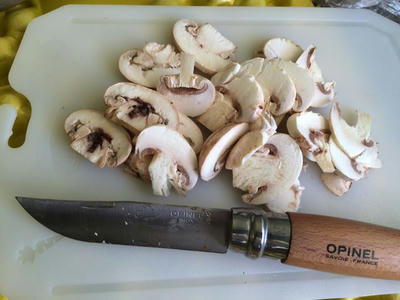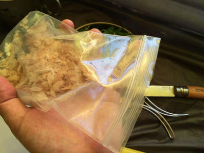 加熱したメスティン蓋のフライパンをグランドシートの上に置いたった!