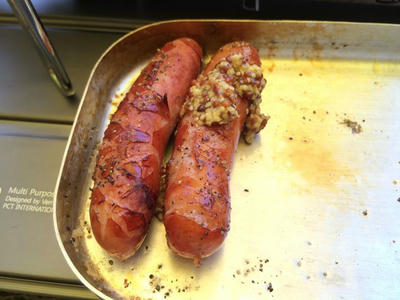 ガックリしたけど、粒マスタードのせウインナーは、うみゃ〜!