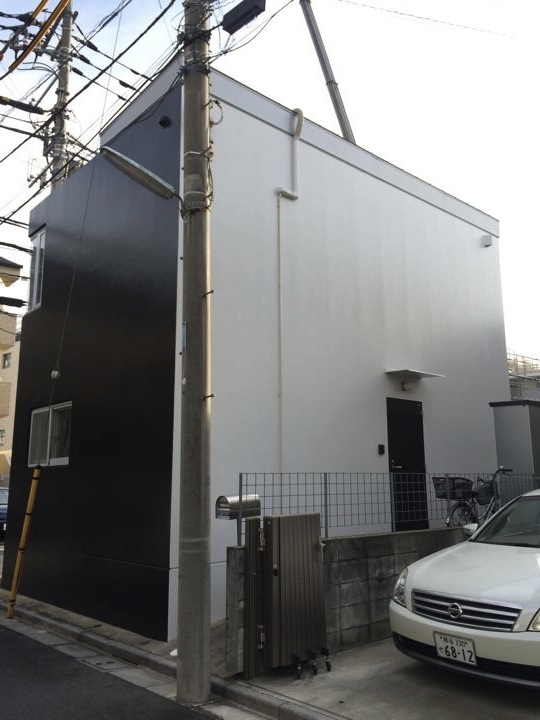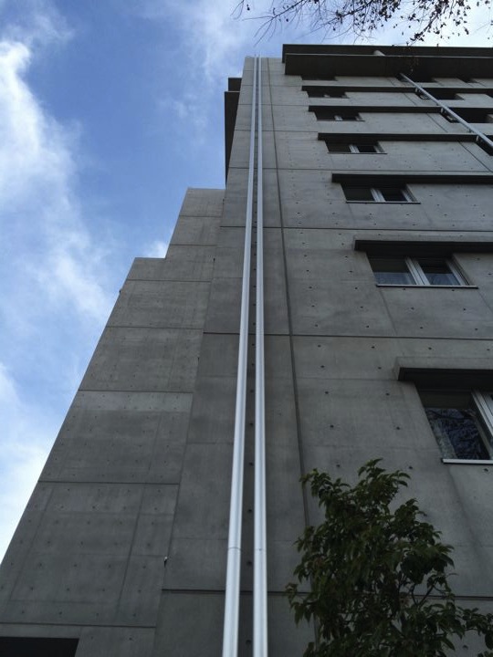 むむぅ。マンションは普通だが双子の雨樋は健在。