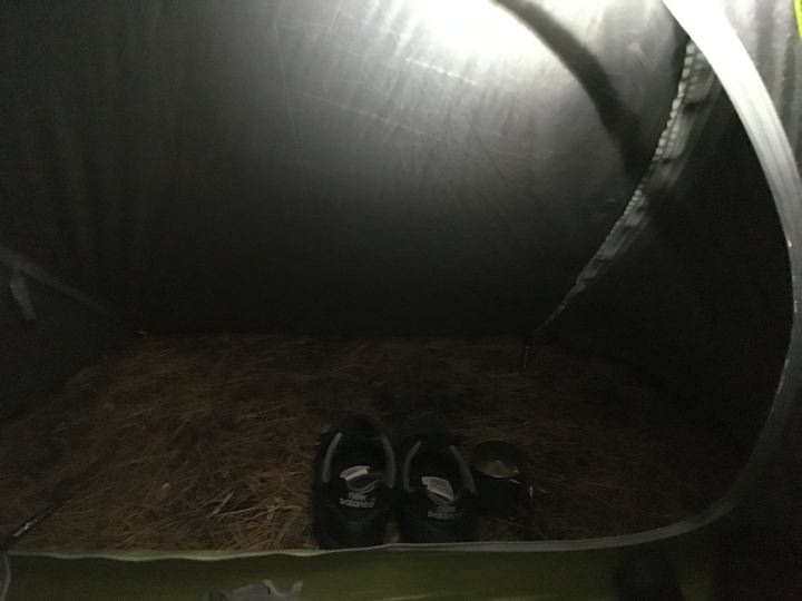 僕ちゃんはひとりぼっちぺらぺらテント内へ。