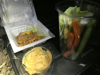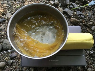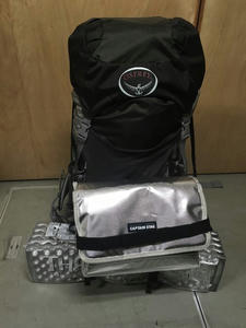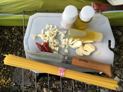 昨夜から事前に冷凍した食材をソフトクーラーにつめました。ぱんぱんになったのでオスプレイの外、サーマレストの上に装着。保冷剤はもうひとまわり大きい方が良かった!説明書どおりのサイズにしたのに〜!じぐじょ〜!