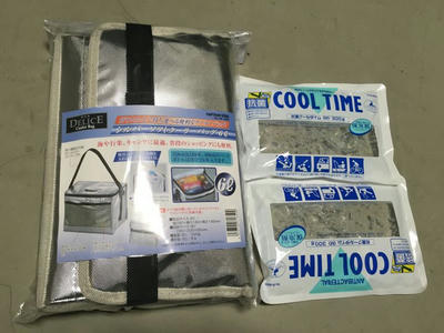 こちらも初登場の折りたたみ式ソフトクーラー6Lと保冷剤。