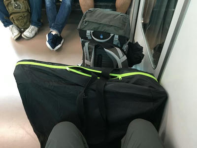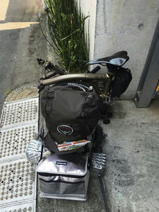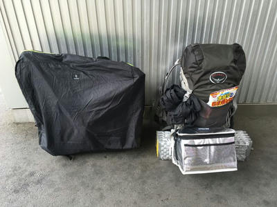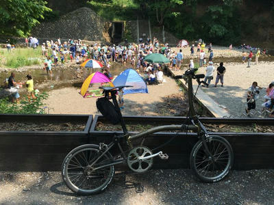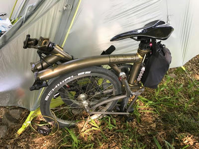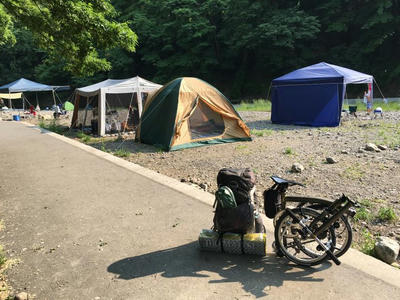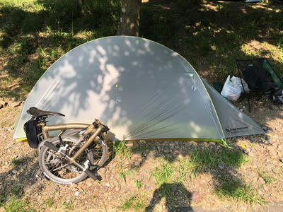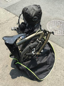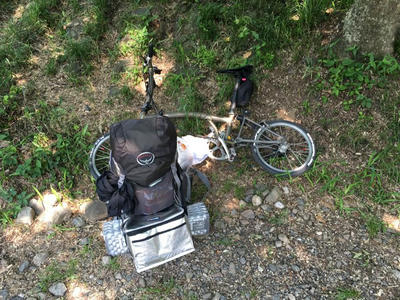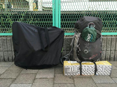 輪行キャンプでは、やっぱりBromptonとザックなど荷物は2点に絞らないと大変です。2つまでは重くても楽です。3つあると軽くてもなにかと面倒です。
