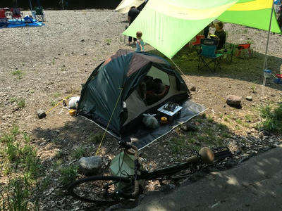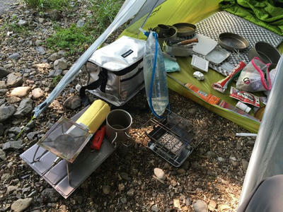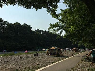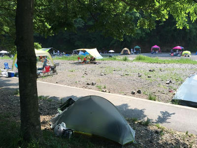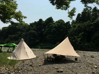 河原は暑そうなので、タープ持ってないからとりあえずこの木の下にします。