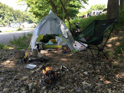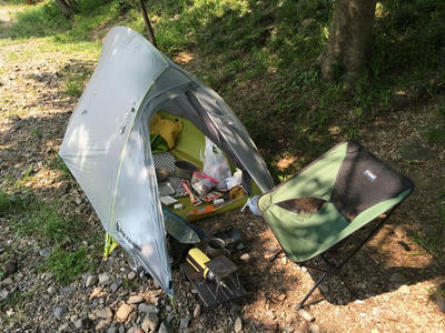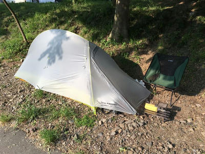 とにかく暑いので木の下にBig Agnes Fly Creek 1 Platinumをサクッと張りました。