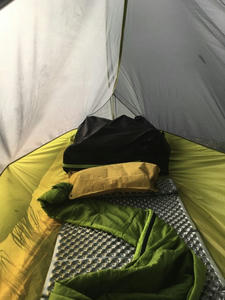 今回の寝具は、サーマレストの断熱マットといつもの夏用シュラフとエアーまくらのみ。