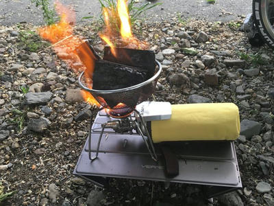 VARGO TITANIUM FIRE BOX GRILLは焚火台にもなります。ファイヤー!