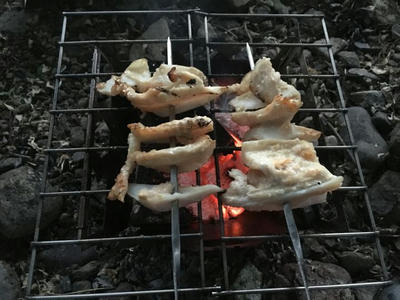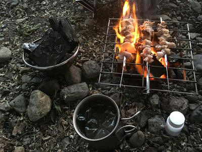 食後はヘリノックスに座りながら再び焚火でまったり。