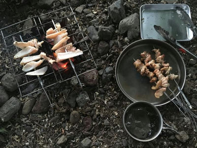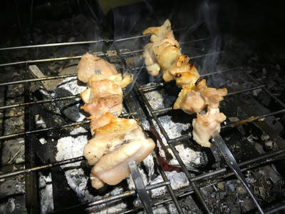 芋焼酎のロックを飲りながら焼鳥開始。お味はもちろん岩塩です。