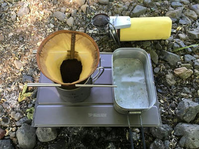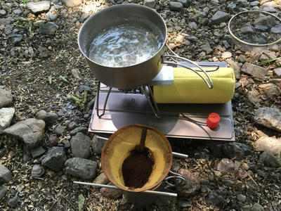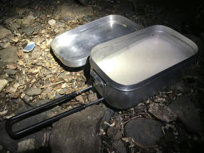 お水を入れます。リベットの下くらいね。メスティンはそれが便利。