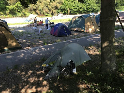 後で知ったのですが、この位置はテント張っては行けない場所みたいです。何も文句は言われませんでしたが・・・。し、知らなかった。