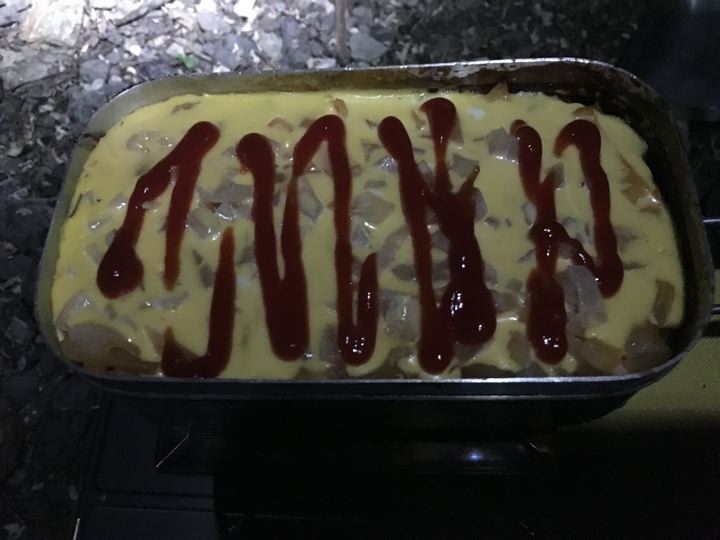 でけた。メスティンで作る「いきなりオムライス」ふわとろ卵にて。