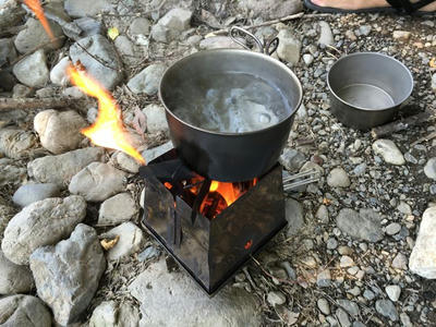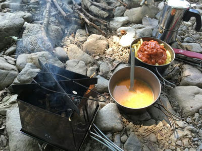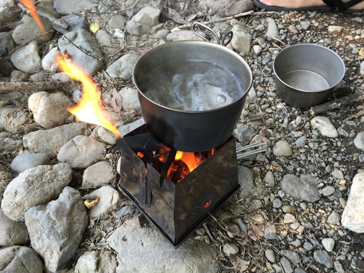 めちゃ二日酔いなので、川の水をプラティパスにくんでモーニング珈琲で気合いを入れます。