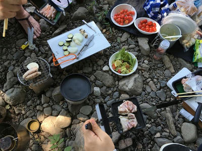皆さん、それぞれにいろんなバーナーでバラバラにランチの準備。