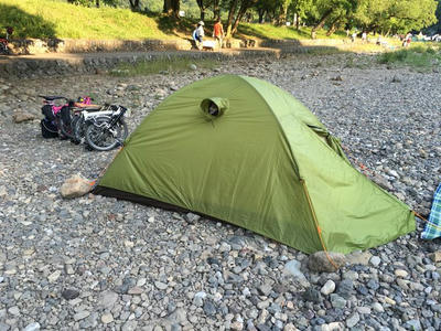 初めてお会いしたパパはMSRの超軽量テントに肉抜きエアマット。むむぅ。やるなぁ〜。
