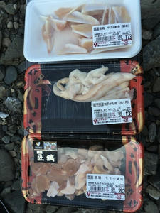 やげん軟骨、鴨皮、もも。結構串刺しは面倒ですが、頑張ります。