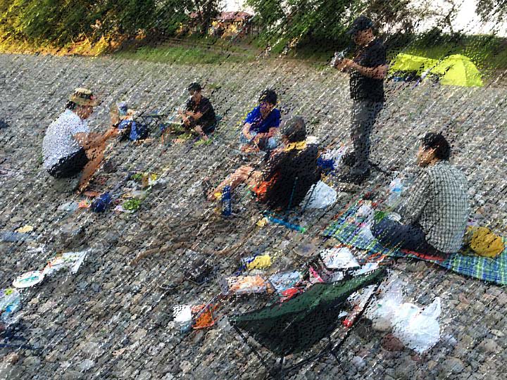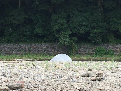 折角河原にいるので、川すれっすれのキワに張ります。向こう側にも似た様な方々が・・・