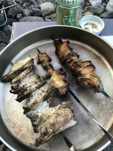 まずは定番の焼鳥から。鶏肉は安くて旨くて痛風的にも一番優しいです。