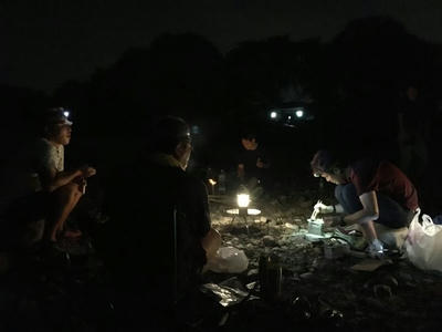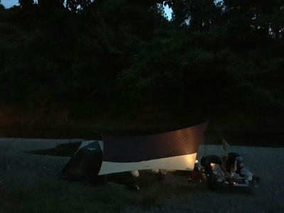 リョウさんはいつものネイチャーハイクでタープ泊。男前や。タープ泊なんて無理。