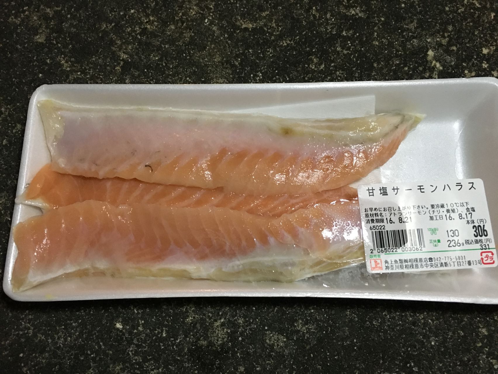 サケハラス。脂がのってて、なにコレ〜!うみゃ~!