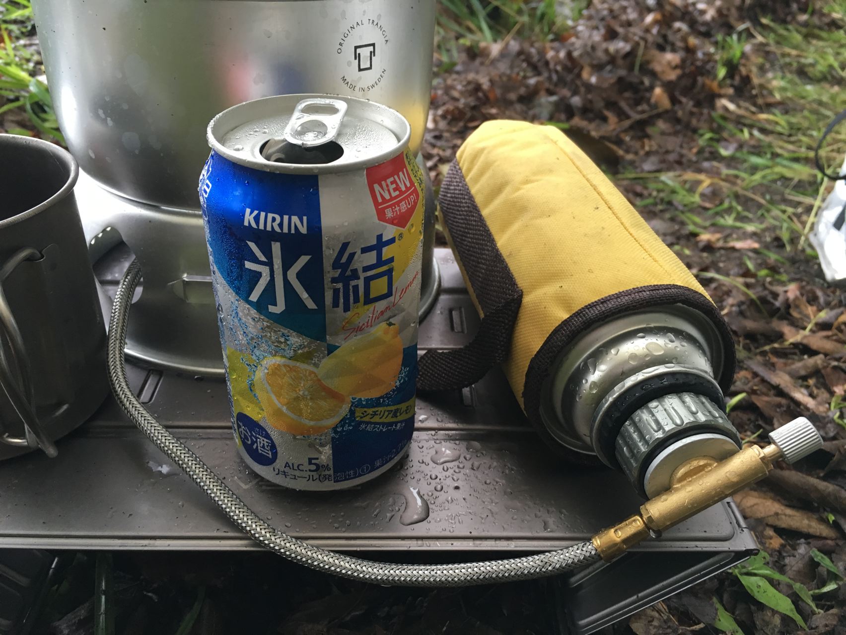 氷結飲みながらまってりしていると・・・そしたらなんとぉーっ!やかんの取っ手がとけとった!しびれゔぁ!じぐじょ~!