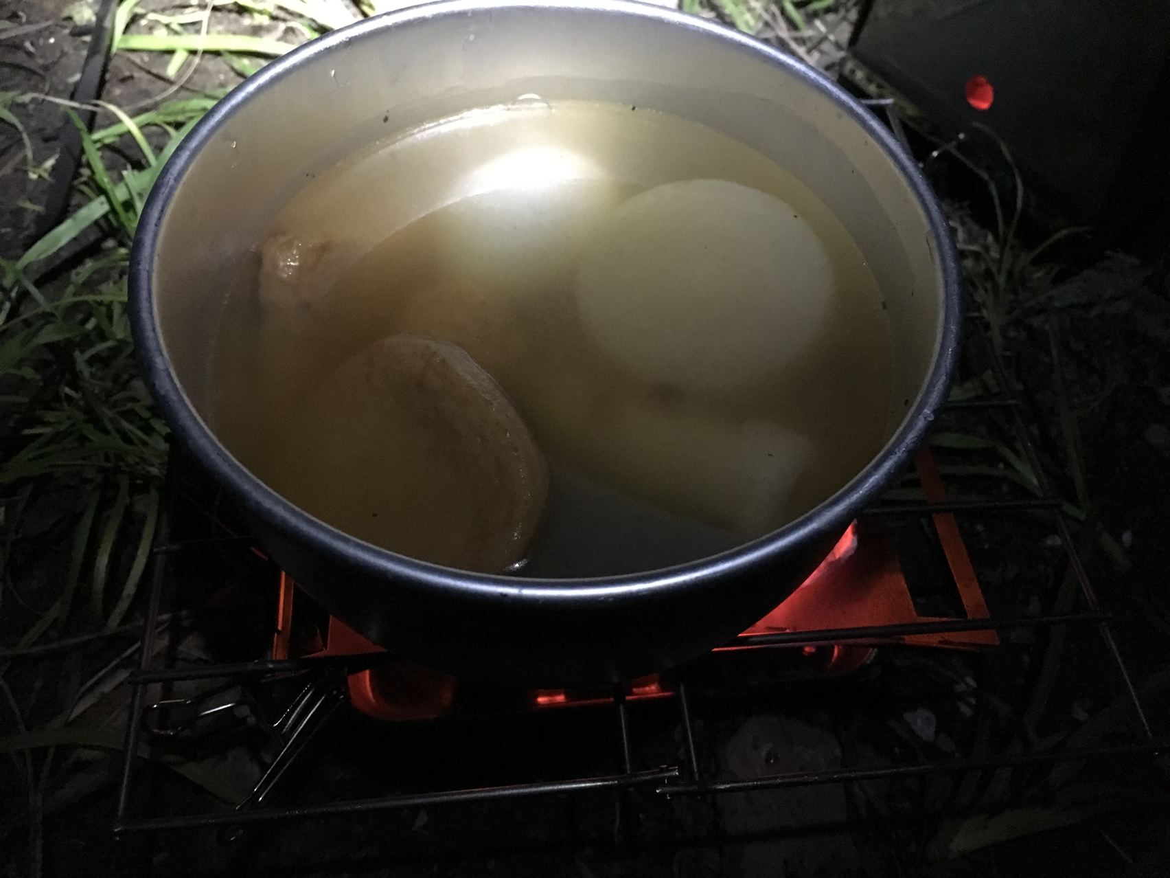 初めてストームクッカーでご飯を炊きました。焦げた。