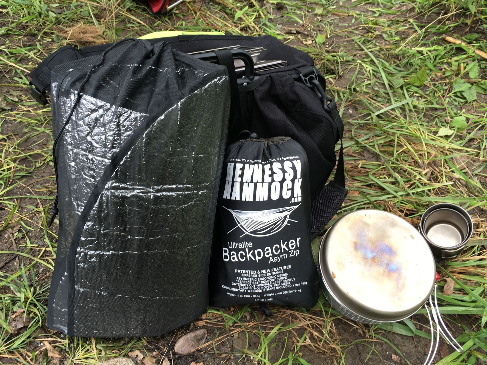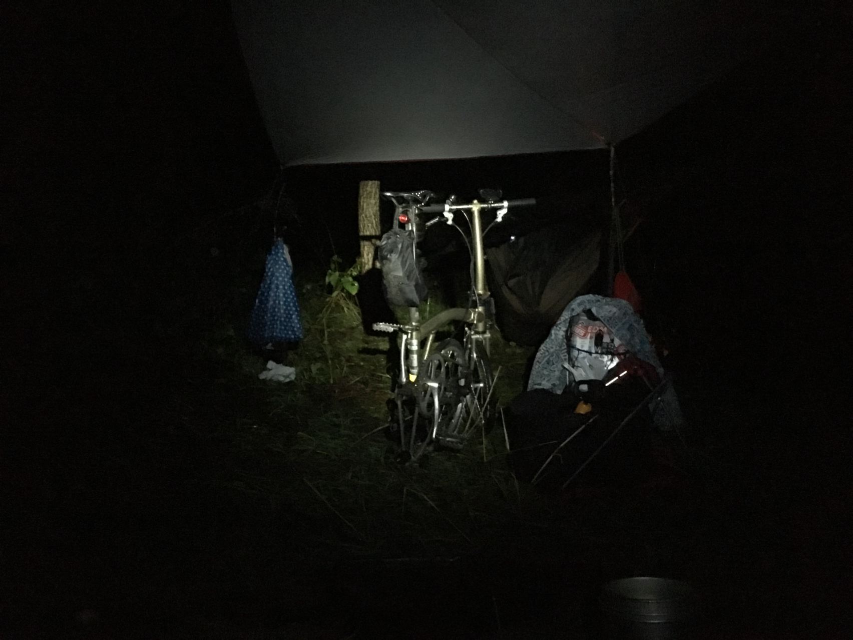 今回はウルトラライトって事で、寝袋はSOLの一番軽いビビィにしました。透湿性がないので蒸れと結露でちょっとびちょびちょ。泣