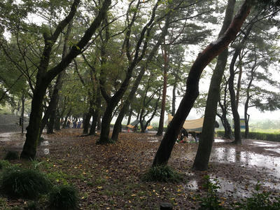 天気が悪いのでキャンパー少なし。水たまりも既にだいぶ溜まってました。