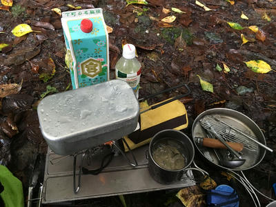 残りの炭火を火種に秋の枯れ葉で焚火したりしつつ・・・