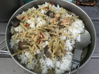 ご飯炊けて、本日のランチは、パクチーグリーンカレー!う、うみゃ〜!