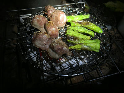 最初は面倒だったから砂肝網焼き。定番のシシトウも一緒に。うみゃ〜!