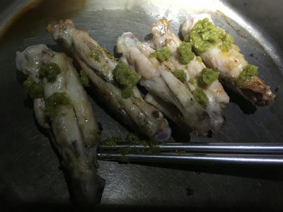 手羽中は柚子胡椒にて。柚子胡椒もやっぱり、うみゃ〜!