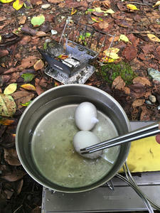 プラティパスのチューブの長さもバッチリ。お水入れて半熟ゆで卵を作ります。