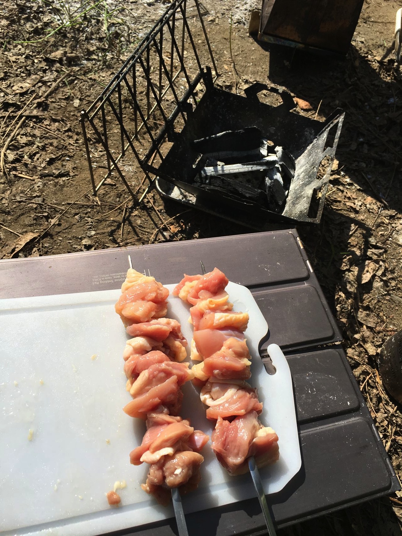 岩手山南部赤鶏の、ハツ、皮、モモを丁寧に串刺し。焼鳥で一番大変なポイント。