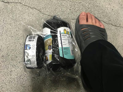 本体の袋でコンプレッション!硬球みたいな硬さに、しびれゔぁ!