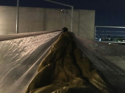 シュラフも出して寝て試す。やはり背中側のロフトは潰れてやや寒いかも〜