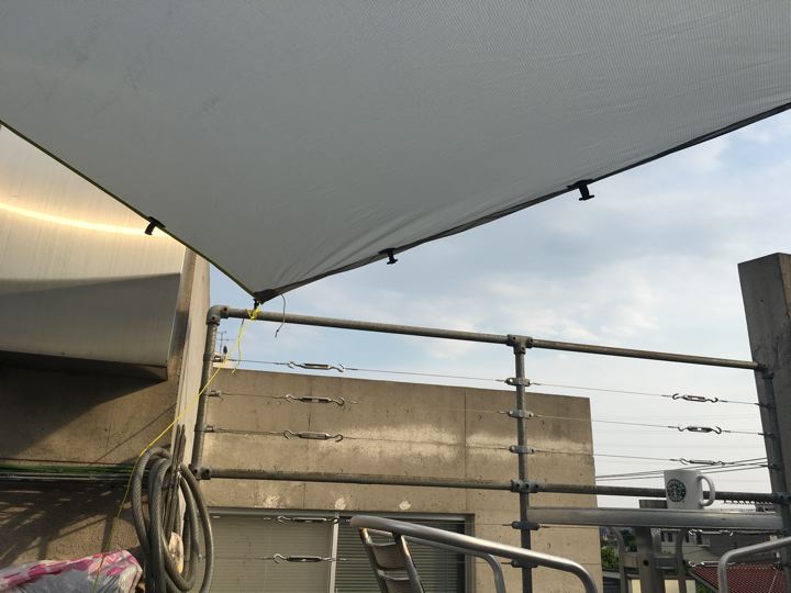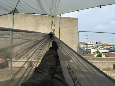 ニンジャタープとULハンモックを持って屋上に上がります。