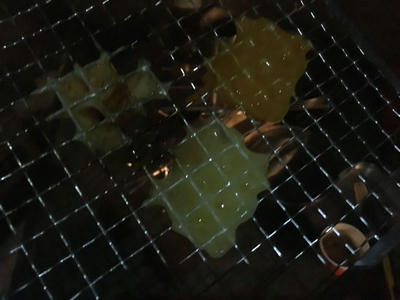 チーズは昨日の失敗で、溶けちゃうからメスティンの蓋の上で燻しました。OK!