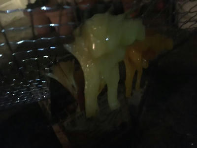 もう待てません。ちょっと早いけどだいたい乾いてきたので、また飲みながら燻!