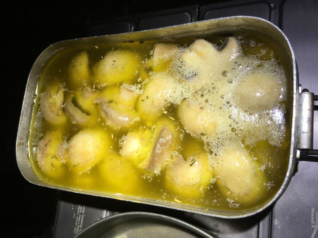 僕ちゃんはアヒージョ。あひ〜!もちろんバゲットつけて食べます。うみゃ〜!