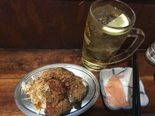 3杯飲んで、〆には大盛りレバホルモン150円で、この日は終了。OK!