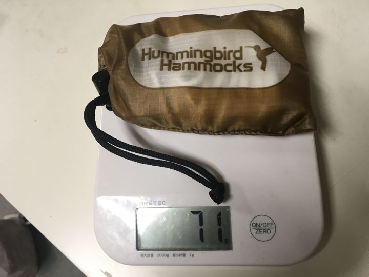Hummingbird Hammocks Tree Strapsの組み合わせだと220g!やった〜!