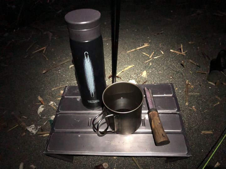 地べた張りにとても時間がかかってしまい、あっとゆ〜まに夜。やっと落ち着いたので、珍しく持参したコーヒーで一息。